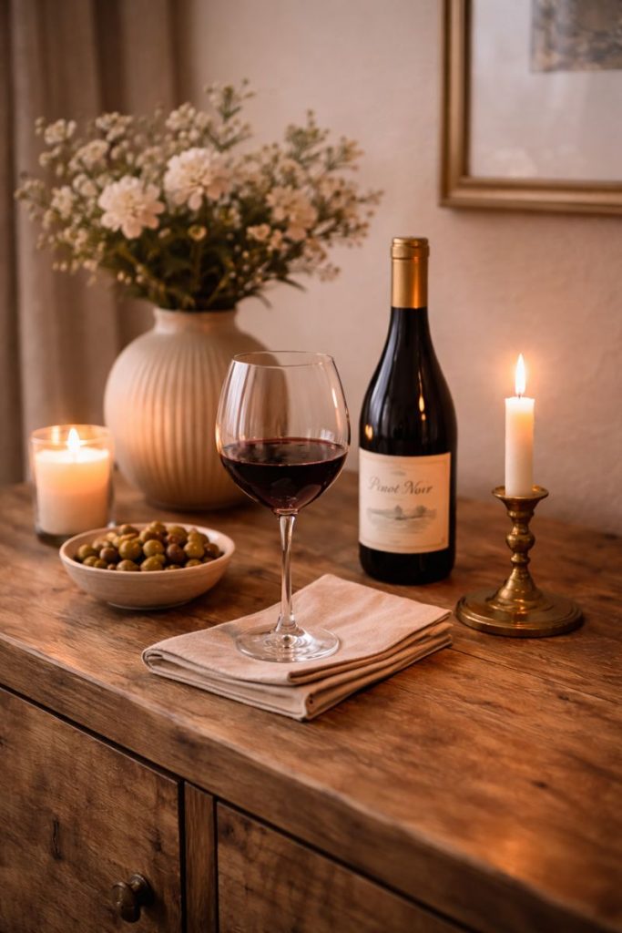 Ritual thrives on consistency. Choose a place where you’ll usually enjoy your wine, whether that’s the dining table, a sideboard, or a small corner of your living room.