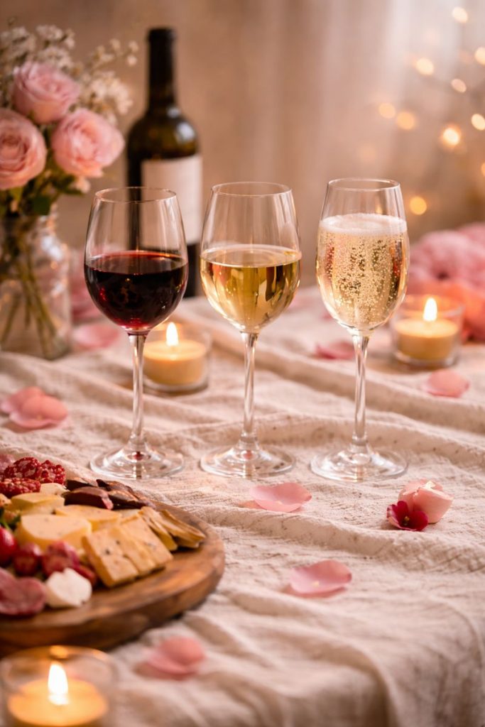 For lighter meals or seafood, a richer white wine can feel just as romantic as red.